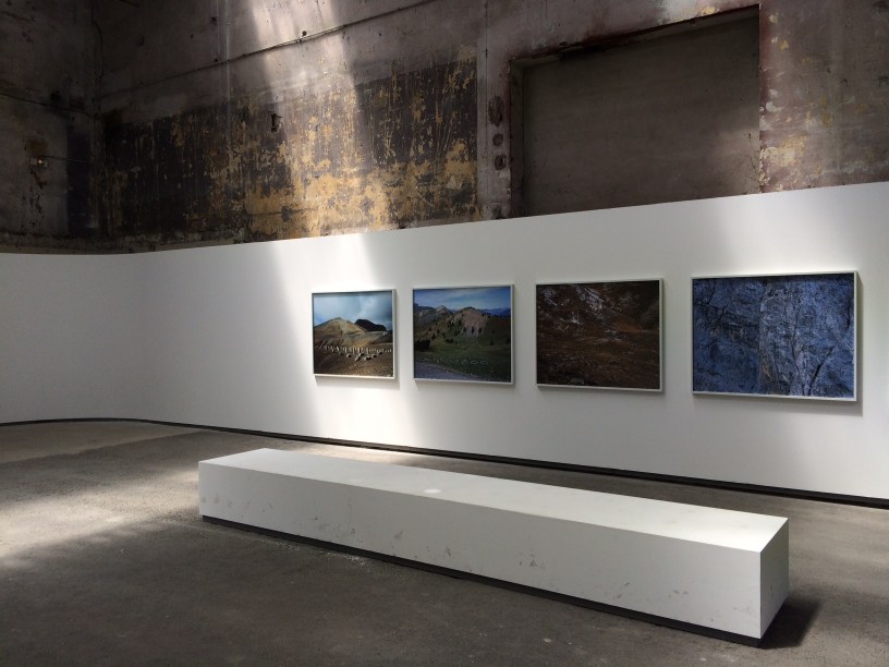 « Entre deux points d’acier et de ciment, les intervalles vides grandissent, rongeant ce qui restait des plates-formes, et condamnant l’ensemble à s’effacer très lentement, à la façon des dessins d’enfants sur la buée des vitres, estompés par le refroidissement de l’air ambiant » (Tristan Garcia, p. 77). En sept courts chapitres, il restitue de la profondeur historique – sans être une chronique, loin s’en faut – à la fortification et lui redonne son statut de construction humaine avant qu’elle ne semble s’autonomiser en tombant dans l’oubli des hommes et devenir, grâce aux images d’un photographe, dans le futur incertain du « grand effondrement » de l’Internet, l’obsession d’une archéologue un peu cyborg. De ce point de vue, mieux que l’exposition qui nous expose la beauté des images – et dont il faut souligner la grande lisibilité et la clarté de la mise en scène -, le livre, c’est-à-dire les photographies de Guirkinger et le texte de Garcia, nous dévoile ce que le photographe a dans la tête lorsqu’il nous parle de géoglyphe. Cependant, chers amis, il faudra lire pour comprendre…
