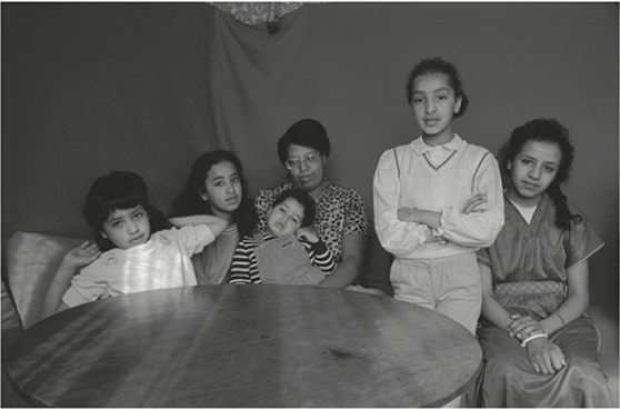TG – Pour ce qui concerne les années 80, je parlerais plutôt de portraits sociaux. Même s’il y a, ici et là, quelques personnages isolés dans un face à face et un rapport qui renvoient au portrait classique, je pense que je me souciais avant tout de quelque chose qui relevait de l’étude sociale. On voit bien dans le livre (et dans mes archives) que je privilégie en fait les situations de groupe (mineurs, familles) plutôt que les individus, y compris pour les portraits posés. Les photos que j’ai faites chez les gens, dans les familles, sont partagées entre des situations où je laissais la vie se dérouler, sans intervenir scénaristiquement, et des moments où je demandais aux gens de se regrouper face à moi, en essayant, notamment sur les photos les plus récentes (celles de 1983), de faire en même temps un portrait d’intérieur de maison (tableaux, papiers peints, fleurs etc.). Je peux d’ailleurs regretter, pour cette ultime série, de ne pas avoir travaillé en couleur. Et l’utilisation du flash était parfois un peu raide (à l’époque, ça ne me choquait pas, ni personne. On trouve ces coups de flash un peu violents chez Diane Arbus par exemple, et j’aimais beaucoup les premiers plans “grillés“ qu’on pouvait trouver dans des scènes d’intérieur chez Friedlander ou Winogrand).