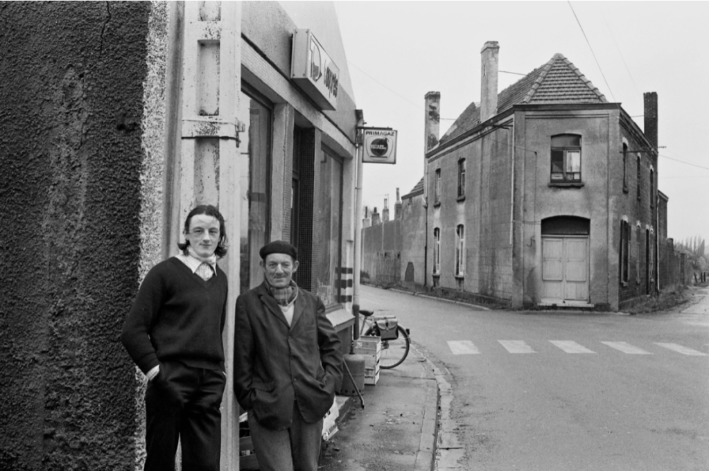 J’aime beaucoup ces deux personnages d’Henin-Beaumont, photographiés en 1982, tenant un poteau, près de leur bistrot, un petit air moqueur, les mains dans les poches dans cette gestuelle classique des catégories ouvrières masculines. C’est déjà le temps du déclin mais on a l’impression, je ne fais qu’inférer sur l’image, qu’il y a encore une fierté du monde d’avant. Les cultures sont les ruines les plus difficiles à éloigner. Sur les dernières images, les hommes qui posent ont souvent les bras ballants – je ne parle pas de ceux qui se montrent en maillot de bain – est-ce là une posture qu’il serait possible d’expliquer ?
